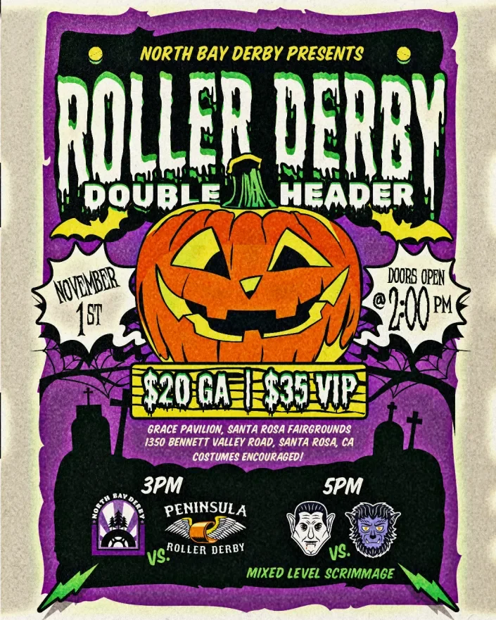 Event Tickets: https://www.eventbrite.com/e/north-bay-derby-halloween-double-header-tickets-1672188453679?aff=oddtdtcreator
